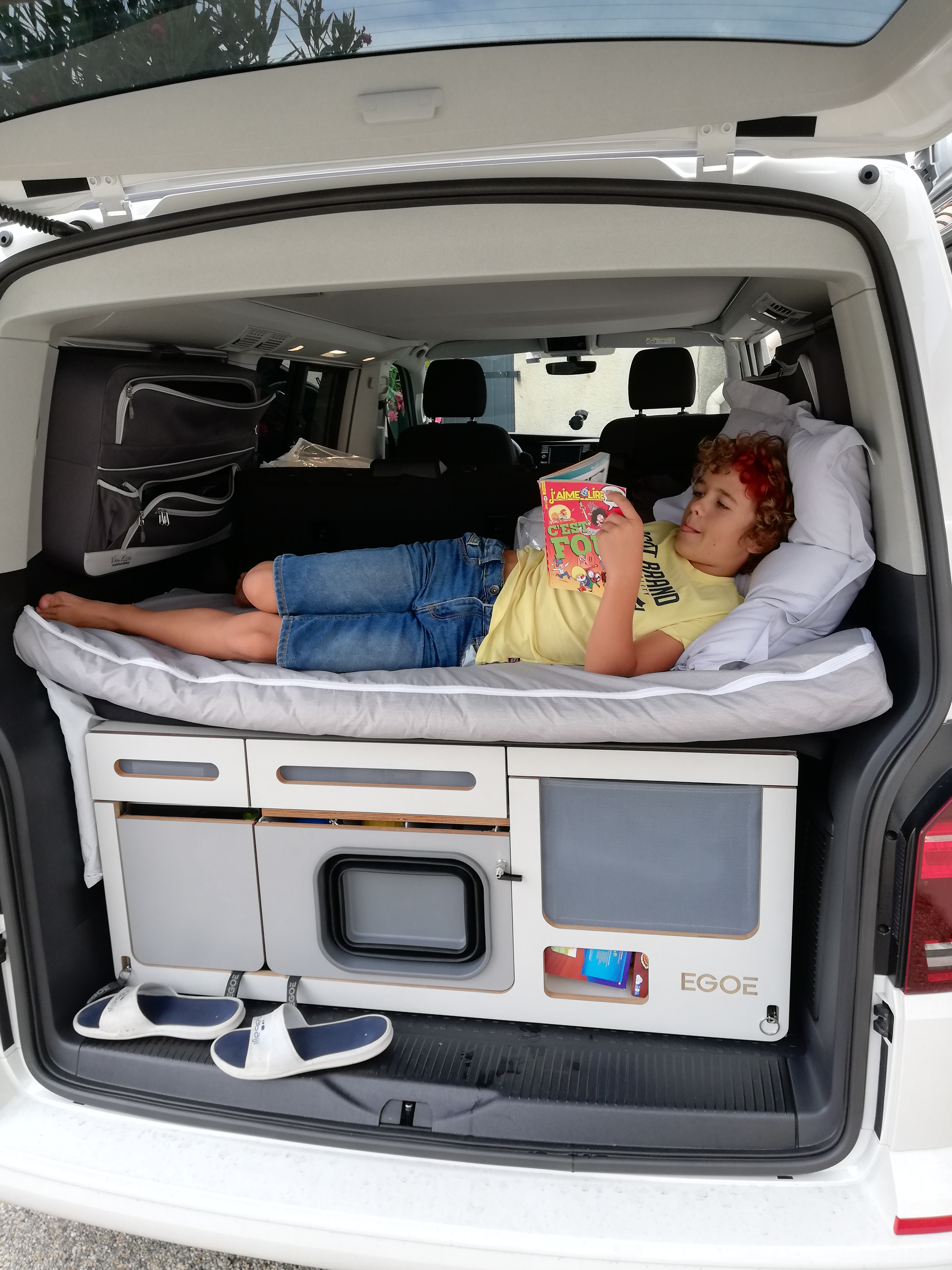 Génial !!! Super van le California beach avec la cuisine ajoutée dans le coffre,hyper pratique!!! Nous sommes partis avec nos 3 enfants et avons eu svt de la pluie mais nous garderons un super souvenir de cette location... vivement l an prochain c est sur on recommence !!!